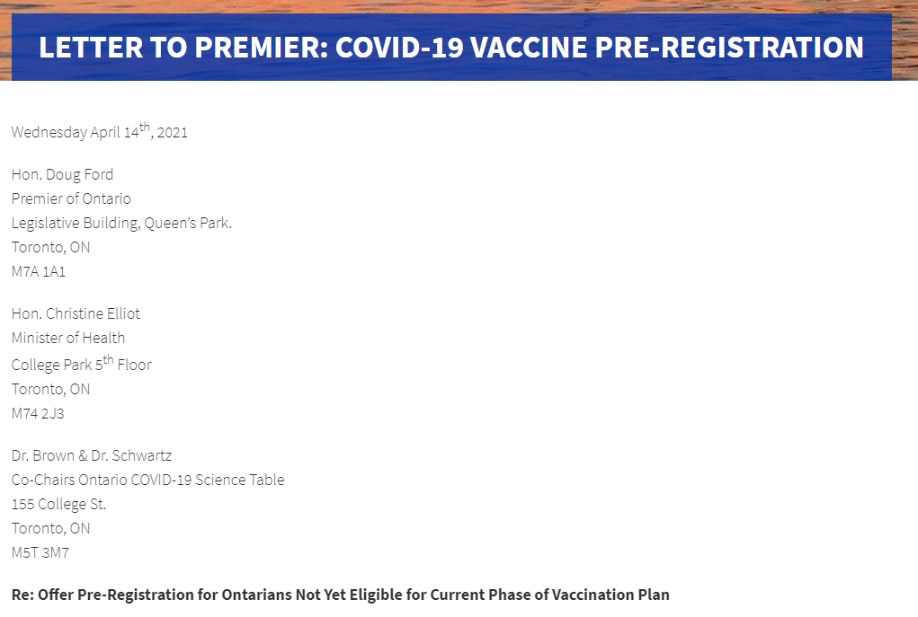 这封信建议允许每个人使用他们的出生日期,邮政编码和联系信息来预先注册第一剂疫苗。他们将通过电子邮件或短信的形式收到他们如何以及在何处预约接种疫苗的信息。