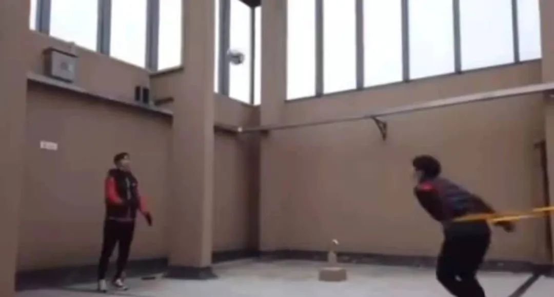 不同的是,颠球失败后,曹国栋就接着颠回去了,而王霜不,她偏要原路返回再重头开始颠。