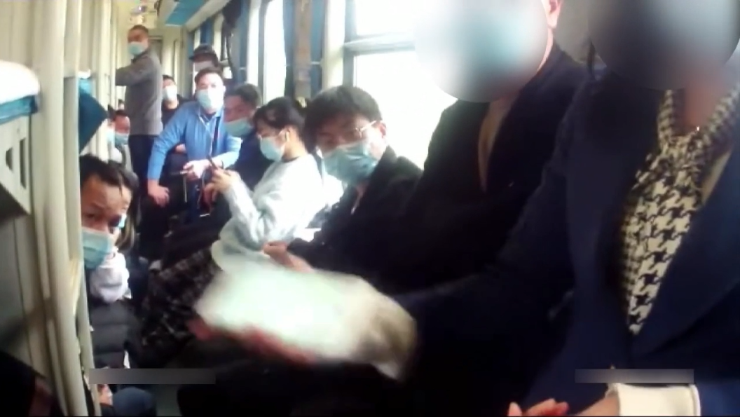 面对车厢众多旅客的围观