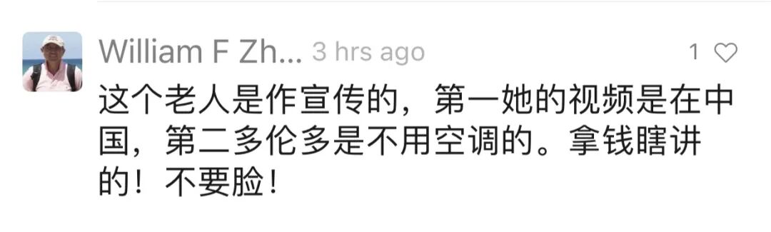 因为老人视频中挂着中文挂历,非说人家这是在中国。加拿大华人这么多,华人超市每到临近新年,就给顾客送日历。以为多伦多地处冬季寒冷的加拿大,夏季就不用空调?