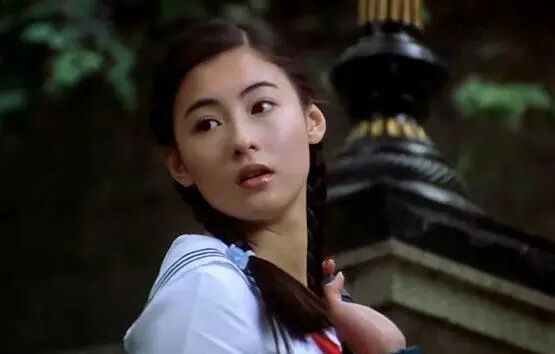 出现在电影中的第一个画面,她穿着学生制服,梳着双马尾辫,背着帆布书包,一个回眸惊艳了所有人。