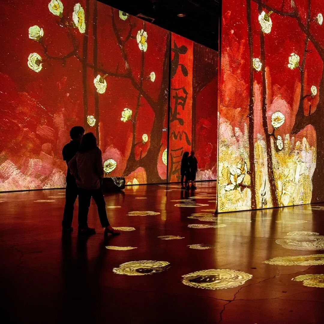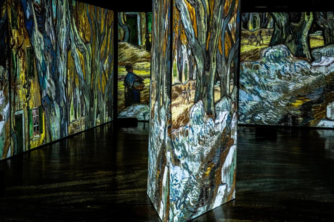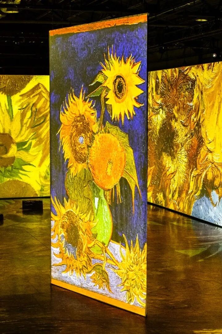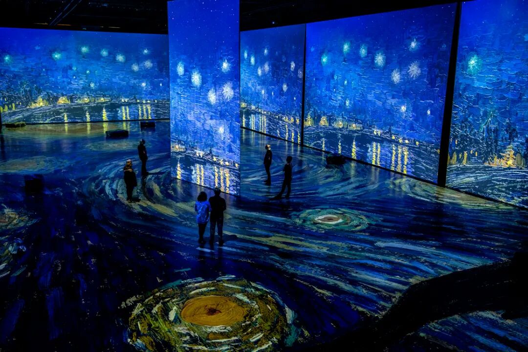 普罗旺斯,阿尔勒与瓦兹河畔奥维尔等地创作的著名画作:《向日葵》、《星夜》、《梵高在阿尔勒的卧室》、《红色葡萄园》。还有大家也非常熟悉的《麦田》、《自画像》、《奥维风景》、《夜间露天咖啡座》、《丝柏树》等。观众们还有幸能欣赏到梵高从日本版画中汲取灵感,随之创作出来的作品,展现了一个梵高视角的东方世界。展览以一种生动、壮观的方式将梵高的油画带到了生活中,让观众在普罗科菲耶夫、卡米尔·圣桑、舒伯特、莫扎特、萨蒂等著名音乐家悠扬古典乐的陪伴下,沉浸在文森特梵高所创造的光怪陆离的世界里。