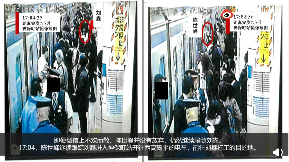 两人在地铁站分开后,陈世峰一直近距离尾随刘鑫,没有离开。