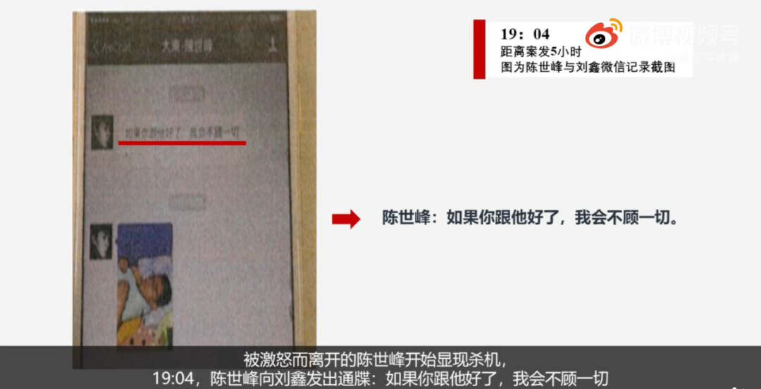 面对这种险境,刘鑫依然没有报警,而是向一位同事发消息求助,让对方扮演她的男友给陈世峰看;陈世峰看到后,愤怒地离开了。