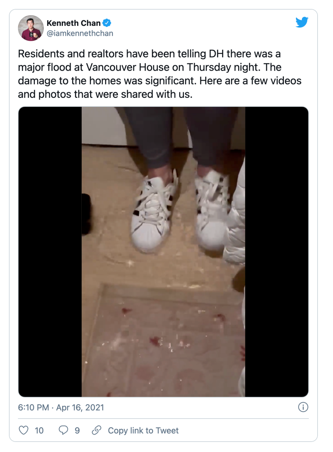 有媒体第一时间爆料称,“根据多位大厦居民和房地产经纪的确认,Vancouver House的供水系统就出现了严重故障。大量的水从管道流进公寓、楼梯甚至电梯里。