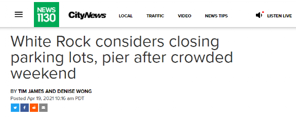 据CityNews 1130 4月19日报道,过去的那个周末去白石栈桥的人实在是太多了,以至于白石市议会正在考虑是否该把栈桥及周边的停车场整个关掉。