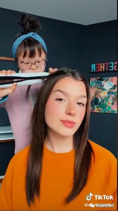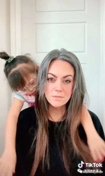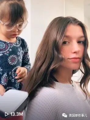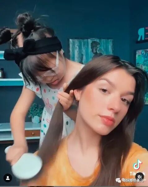 发型打造好后,她会抹一抹前额的头发,拍拍姐姐的肩膀,很有造型师的范儿~