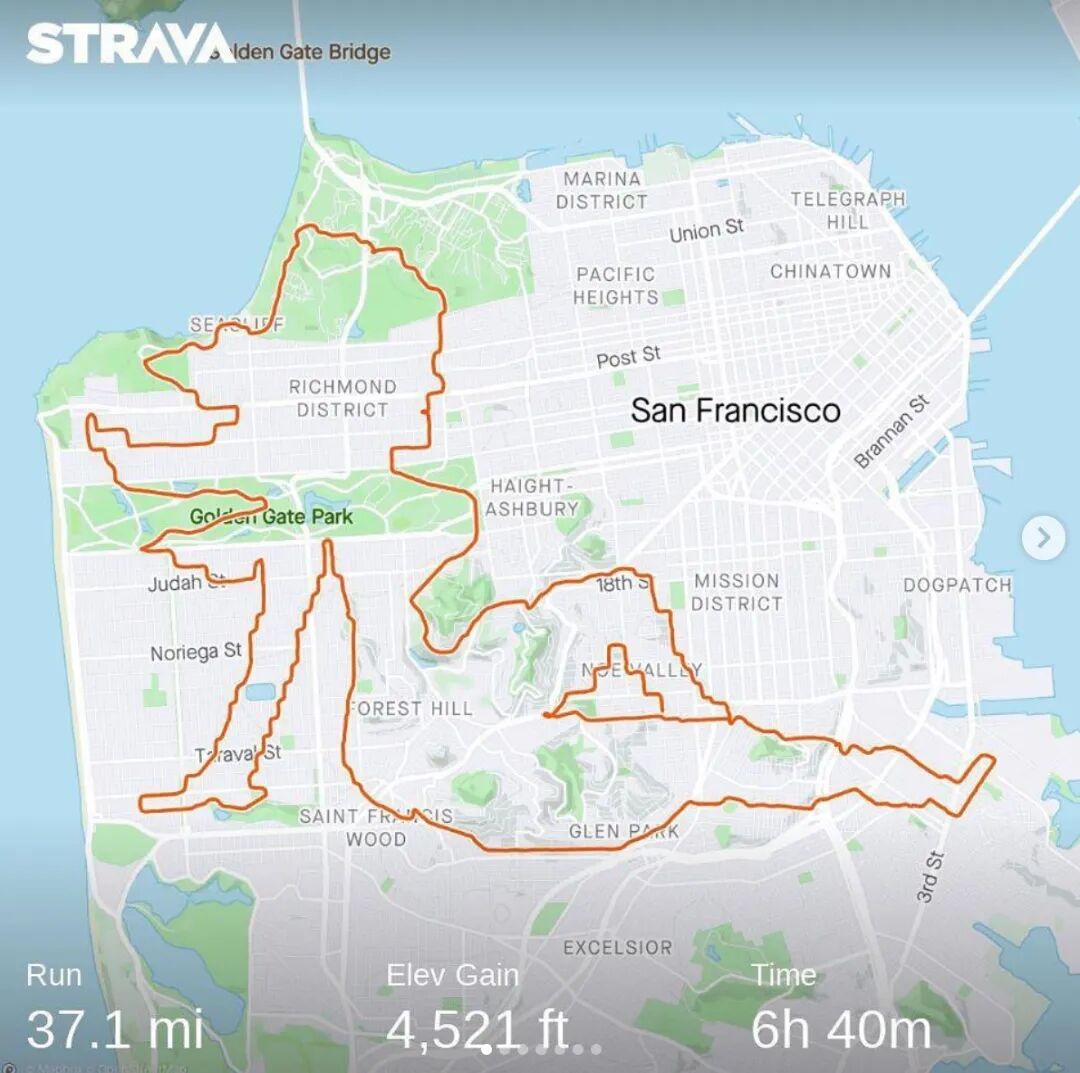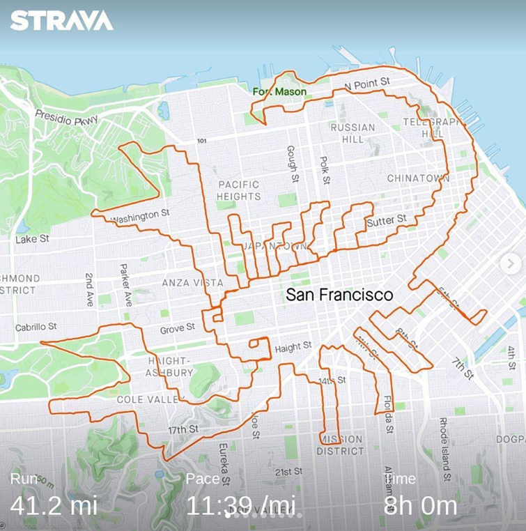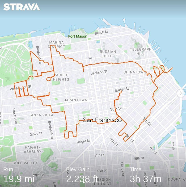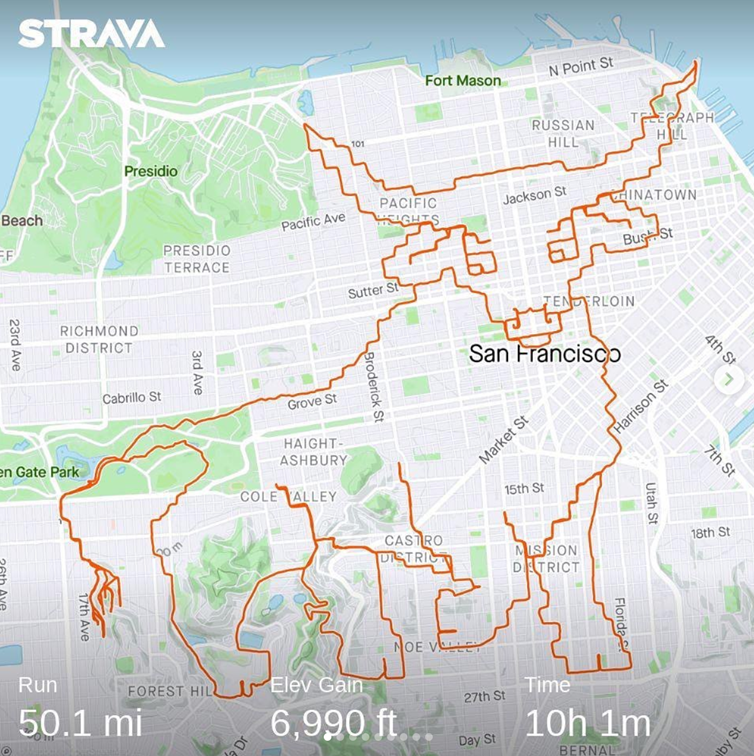 除了加拿大的艺术达人,在全世界,还有很多热爱运动的人在创作Strava艺术。