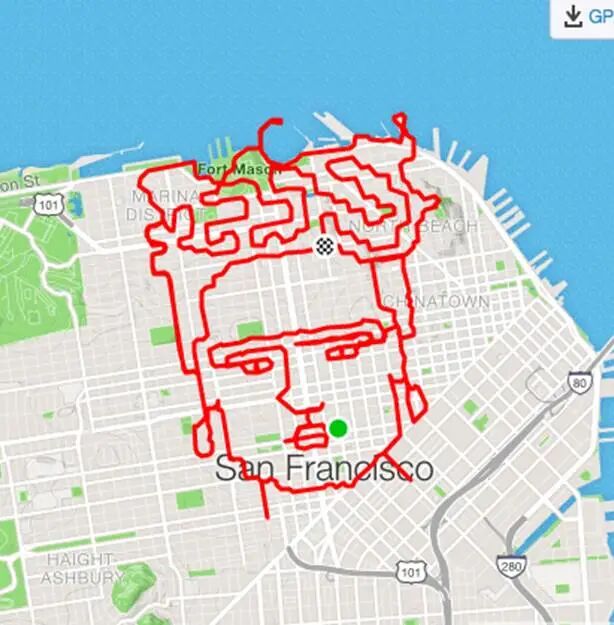 Reid的“GPS绘图小组”很快吸引了大批跑步和涂鸦爱好者,他们纷纷成了Strava艺术的追随者,尽情发挥想象力,让无聊的跑步变得更有创意。