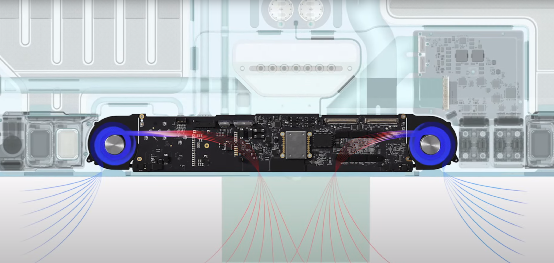 24英寸的屏幕,4480 X 2520的分辨率,左右各三的六扬声器系统。而且因为M1芯片的发热量非常低,