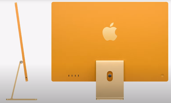 全新的iMac采用苹果去年发布的M1芯片。由于功耗和散热需求大大降低,2021款iMac直接砍掉了往年机身背部隆起的弧度,然后换成了一整块11.5毫米的屏幕,总体积减少了50%。