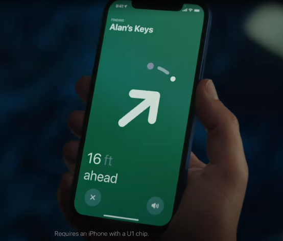同时,AirTag将与iPhone配合,从视觉,触觉,听觉(就是手机一按这个AirTag就会叫)等多个感知层面反馈,提供直觉化的查找流程。从宣传片上看,这个定位做得相当准了。