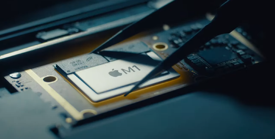 然后各种钻通风管道之类的酷炫操作之后来到一台搭载了M1芯片的Macbook面前,一把撬下芯片。