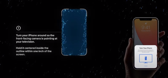 觉得有色差?打开相应的设置,然后把你的iPhone屏幕往电视屏幕上一怼,几秒钟之后你手机上看的是啥颜色,电视上就是啥颜色。