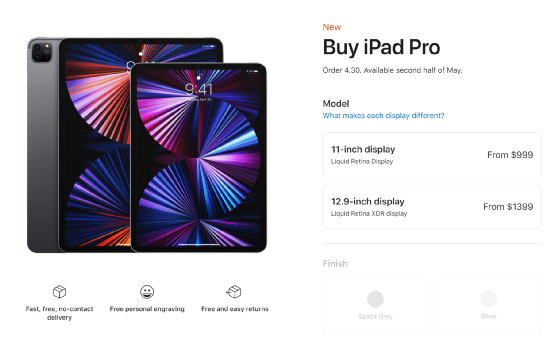 售价方面,加拿大苹果官网数据显示,11英寸的iPad Pro售价999加元起,12.9英寸的售价1399加元起。4月30日开放预订,5月下旬开始发售。
