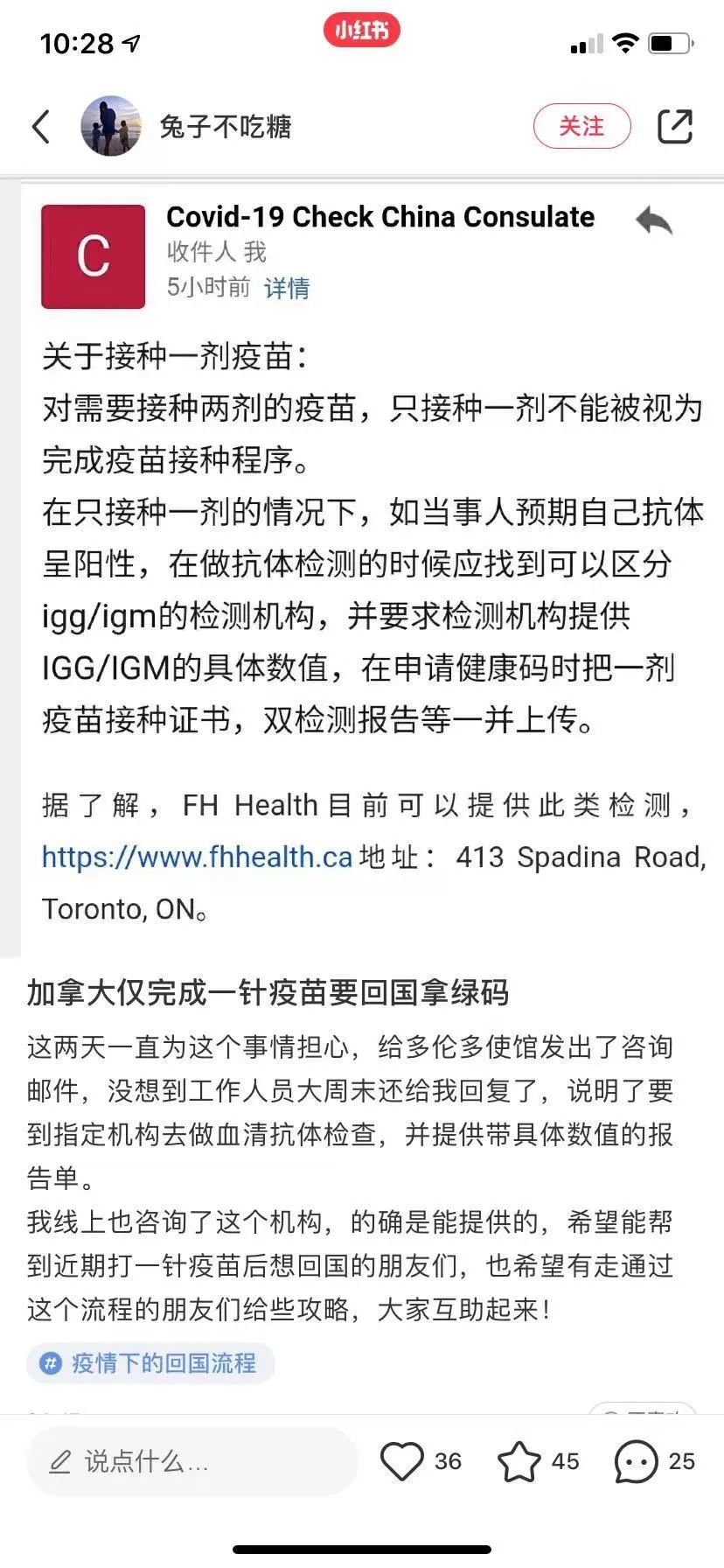 小编首先致电位于列治文的一家知名检测机构,他们一直为华人登机旅客进行核算和血液抗体检测。根据工作人员的解释,打了一针疫苗的检测者的抗体检测结果,有的是阳性,但是也有的是阴性。