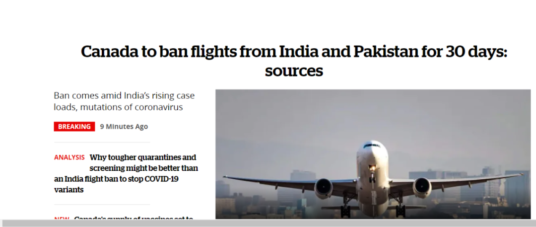 双突变病毒来了!加拿大停飞印度和巴基斯坦航班!