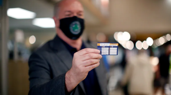 BC省长贺谨手持疫苗接种证明 图自CBC