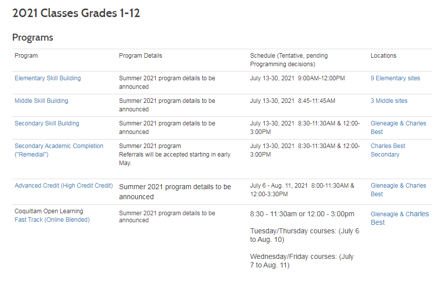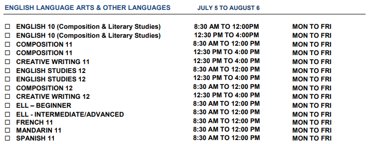 【Burnaby暑期课程注册链接】