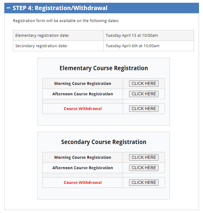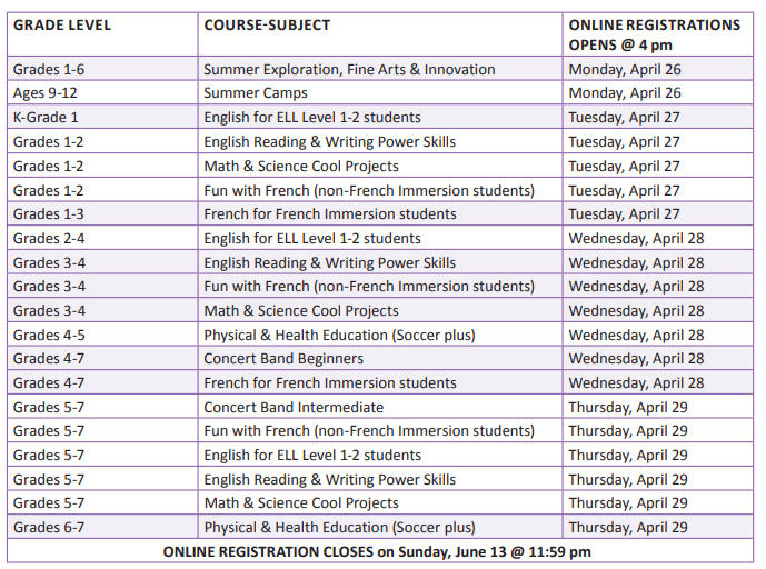 小学 (目前就读Kindergarten – Grade 6):4月15日上午8:00开放,并于5月28日下午4:00关闭