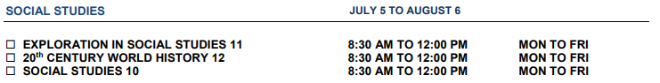 10-12年级的社会研究课程:7月5日~8月6日周一至周五,上午八点半~中午十二点。