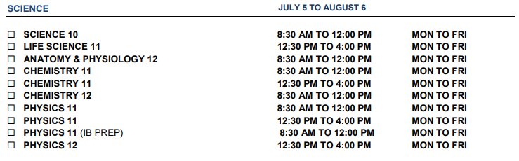 课程设置:暑期课程仅适合BC省内在读的学生申请。