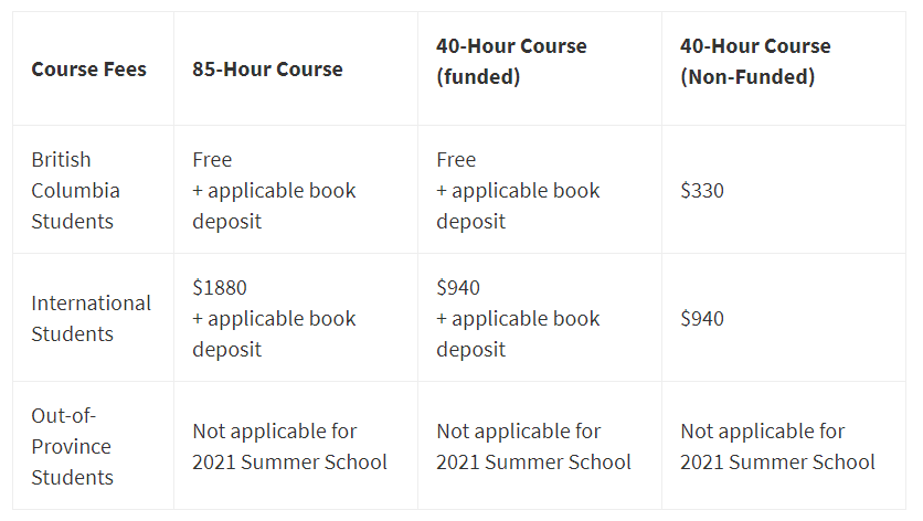 - BC省本地学生是免费提供的;