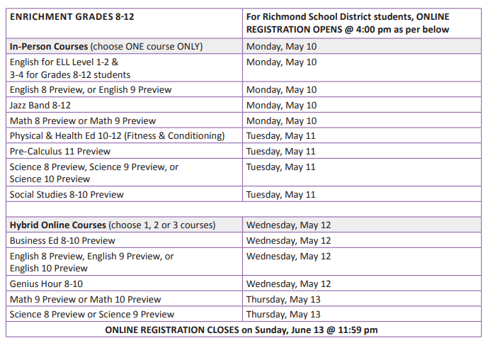 【列治文暑期课程注册链接】