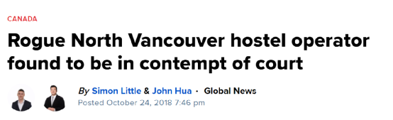 2018年10月24日,物管公司和邻居诉求也得到了BC省最高法院法官Barry M. Davies的支持。BC省最高法院那次的裁决宣判Yu女士私改民宅为旅馆行为属于违法,且因其蔑视法庭,她被法院罚款5000加元,还需要支付物管公司52100加元的赔偿和诉讼费用。