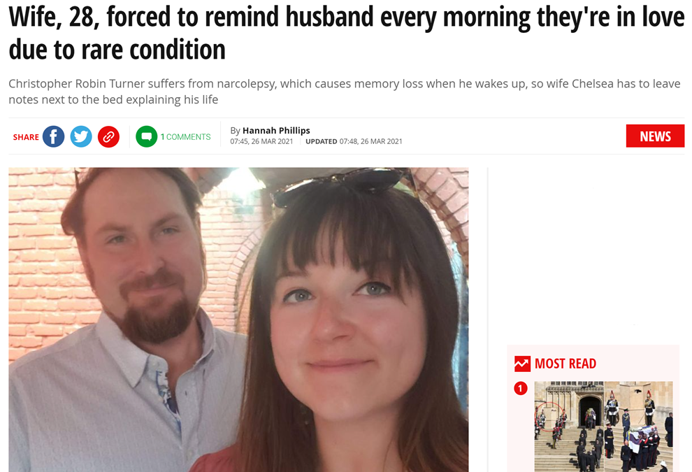 因为丈夫患有一种罕见的导致失忆的疾病: