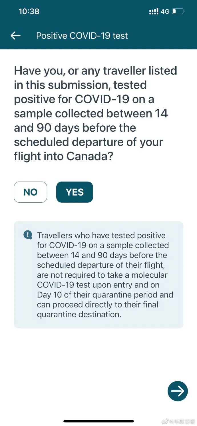 加拿大健康码(ArriveCan)上提到了,在起飞前的14-90天内,如果检测出了阳性抗体(Positive),有机会在登陆加拿大时,被海关检疫人员免去核酸检测和三天的强制酒店隔离,可以直接前往居家隔离的目的地。