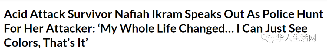 伊克拉姆在接受多家媒体采访时表示,被攻击后她开始大哭,并呼喊父亲,「爸爸,有人朝我脸上泼东西」。
