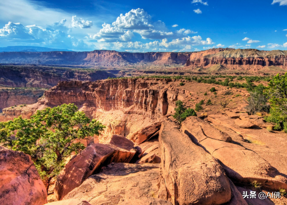 亚利桑那州的大峡谷国家公园是世界闻名的峡谷的代名词,该峡谷宽18英里,深1英里。该公园占地超过一百万英亩,包括凸起的高原和结构性盆地。它被认为是世界上干旱土地侵蚀的最好例证之一。它拥有丰富多样的化石记录,并且该土地提供了四个地质时代中三个地质时代的详细记录。