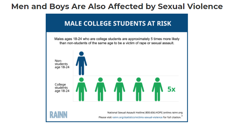 性侵不止发生在女性身上,有3%的男性也会遭到性侵,其中18-24岁的在校男生风险最高。