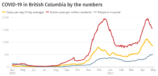 BC省卫生官员4月29日宣布了874例新增病例,另有一人死亡。目前新冠住院病患已达503人,较28日有所下降,但重症监护病房里的178名病患数,依旧是疫情发生以来最高的。