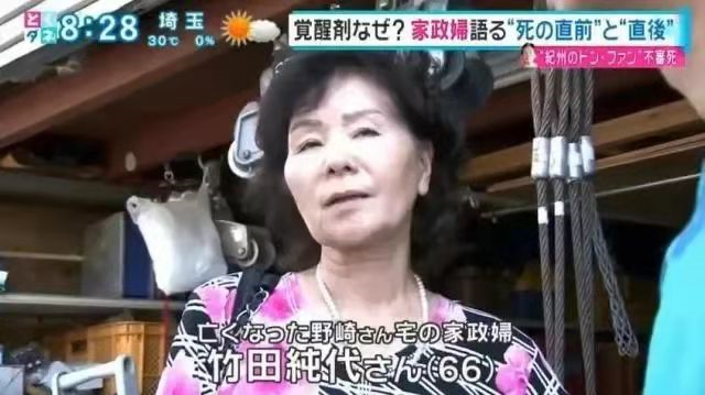 野崎死亡当天,家中只有两个人。一个是他的新婚娇妻须藤早贵。另一个是与他有着20多年雇佣关系,负责照顾他起居日常66岁的竹田纯代。