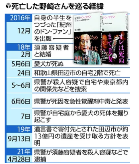 虽说这个案子看似是须藤为了独吞遗产而谋杀老公,但实际上,留过一手的野崎早就已经写下了自己的遗嘱,保存在了朋友那里。遗嘱上称,野崎大约13亿5000万日元的遗产全部捐赠予自己的故乡田边市。