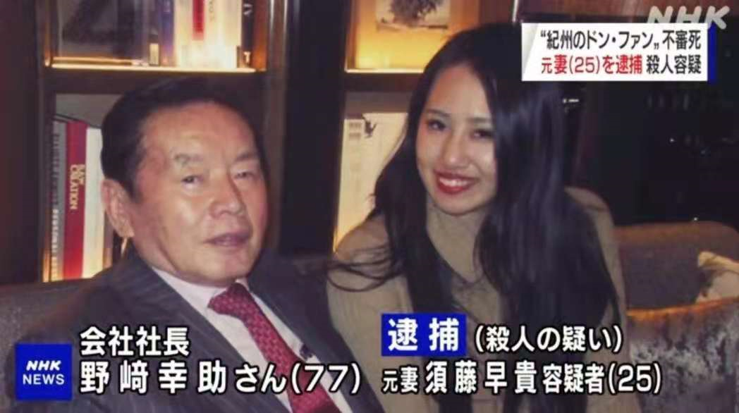 2018年2月,77岁的野崎风风光光迎娶了22岁的须藤。须藤同意结婚的条件也很简单,那就是野崎每个月给她100万。