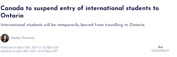 虽然加拿大已将边境封锁了一年多,但持有效学签的国际留学生还是可以入境的。但随着加拿大联邦政府即将明文禁止国际留学生入境安大略省,“开学”又成了个遥不可及的词汇。