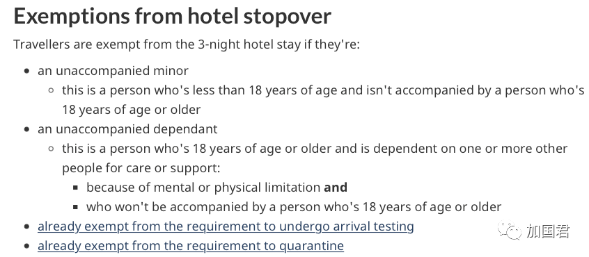 根据加拿大卫生部官网指引,以下四类人士可以豁免3天酒店隔离。
