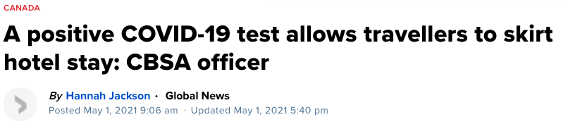 这名CBSA官员说:“以前,我们从来没有真正看到过任何阳性的测试报告入境,然而,当这项豁免被人们所知道时…我们开始注意,有入境旅客拿着阳性测试报告入境了。”