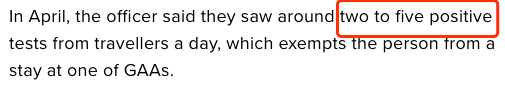 这名CBSA边境局官员说,在刚刚过去的4月份,他们每天看到2-5名入境旅客带着阳性测试报告入境,从而使该人免于酒店隔离。