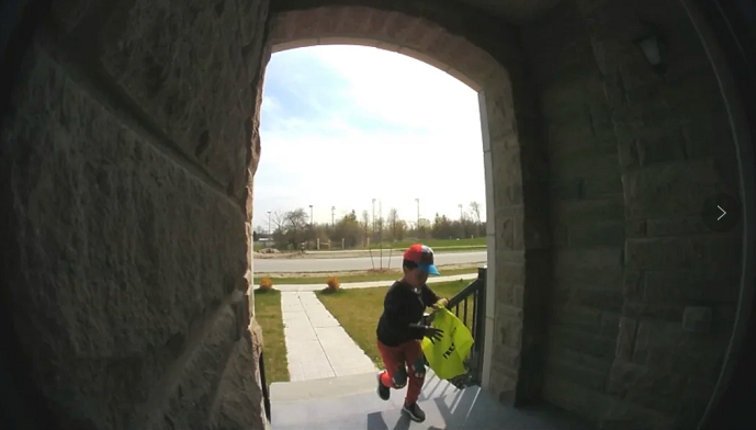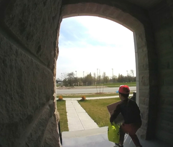 博主小姐姐DHL的包裹到了之后,因为不在家就没及时拿。回家之后却发现包裹找不到了,调监控后才发现,一个7-8岁的亚裔小男孩从侧面跑过来偷走了她的包裹。