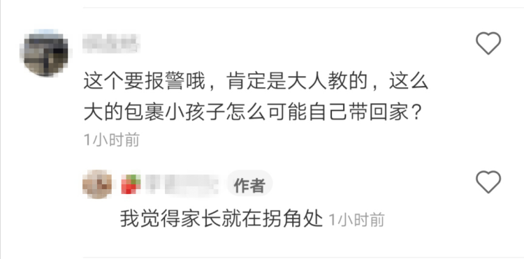 小孩子专门带着一个大袋子来的,觉得家长就在附近。