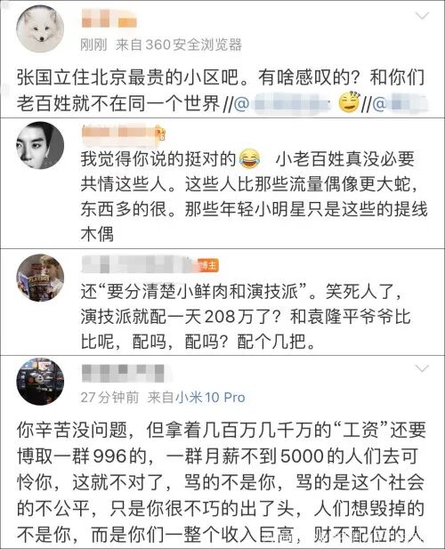 也有网友坚持己见,表示演技派也只是演员而已,科学家、军人远比他们更值得高薪待遇,吐槽粉丝瞎共情。两方各执一词,吵得不可开交。
