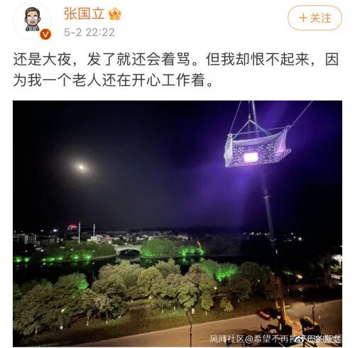 直到他昨晚又发了下夜班的博文,并委婉回应了此前挨骂的事:“发了就还会找骂。但我却恨不起来,因为我一个老人还在开心工作着。”