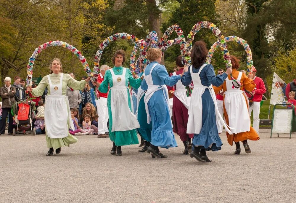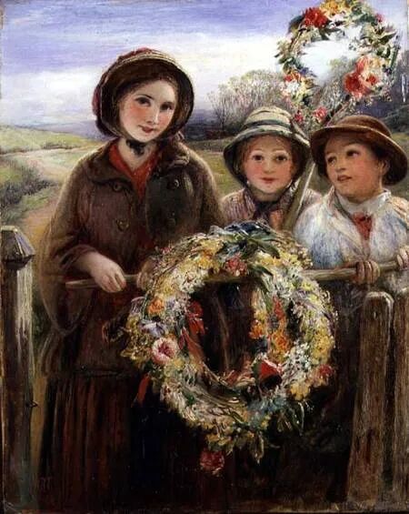 May Day主要在乡村地区庆祝,今天英国仍有很多地方保留着这个传统。庆祝活动包括在田野中采集鲜花编成Garland(花环),在村庄市镇的居民中挑选一位May Queen,由大家抬着游行。