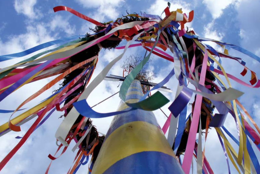 May Day这天,人们还会在空旷的地方竖起一根高大的木杆,叫做 Maypole,大家团团围着跳舞,祈求人畜兴旺。