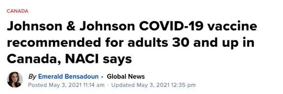 与此同时,加拿大全国疫苗咨询小组今天建议境内30岁以上人士接种强生疫苗。不过由于强生一度被曝出存在血栓等安全问题,而受到人们的质疑。而且目前加拿大已暂停强生疫苗的分发和使用,同时等待进一步检验。