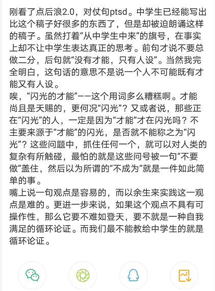 “我不想做一个浑身带刺的人,嘲讽别人的成功,嘲笑别人的失败。”